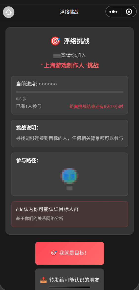有这个想法的起源是在2019年,我在北京后厂村创业公司当实习生,那时候我们想做一个好友之间转卖二首物品的小程序,当时我实现了一个转发链的功能,然后我就在想,抛开商业逻辑不说,这个转发链不就正好可以用来验证六度分割定理吗。但这个idea一直被放在有意思,但无用的“someday”清单里,再加上我实在没耐心去学小程序的前端开发和js,一直就忘了。